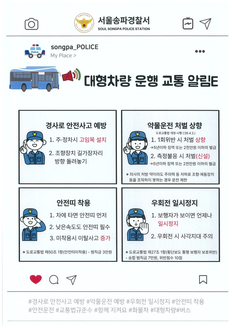 송파경찰서 대형차량 교통 알림 및 약물운전 예방 안전수칙