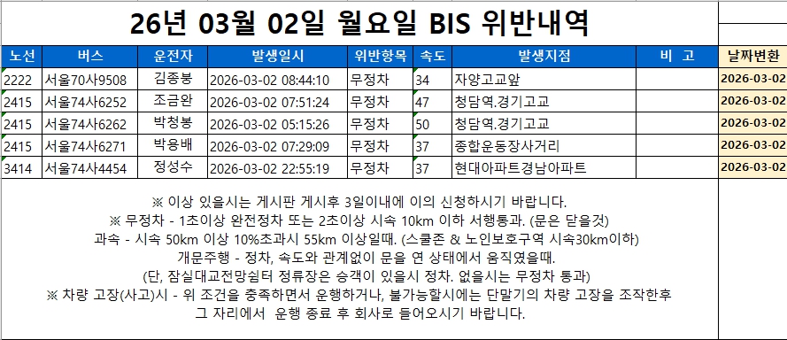 2026년 3월26일(목) BIS위반 (자양, 오금)