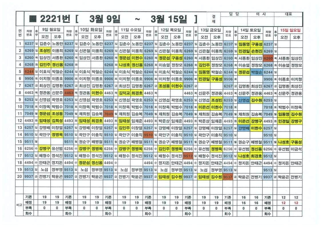 자양 주간근무표 (4/6 월 ~ 4/8 수)