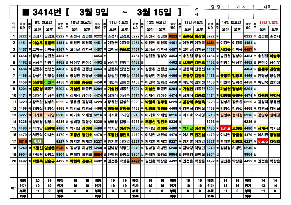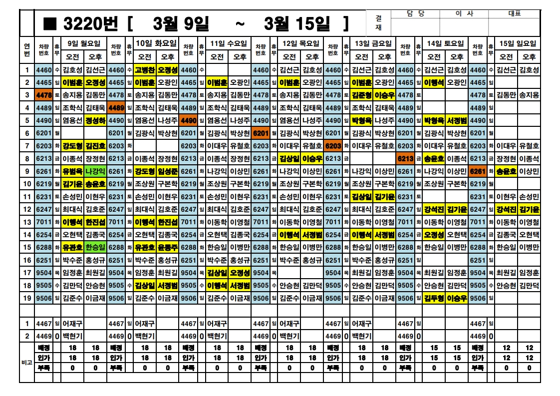 오금 주간근무표 (3/09~ 3/15)