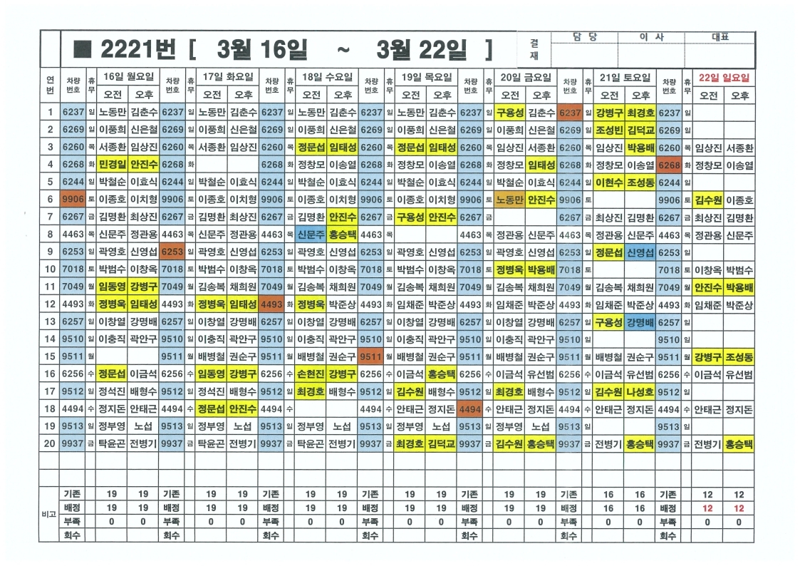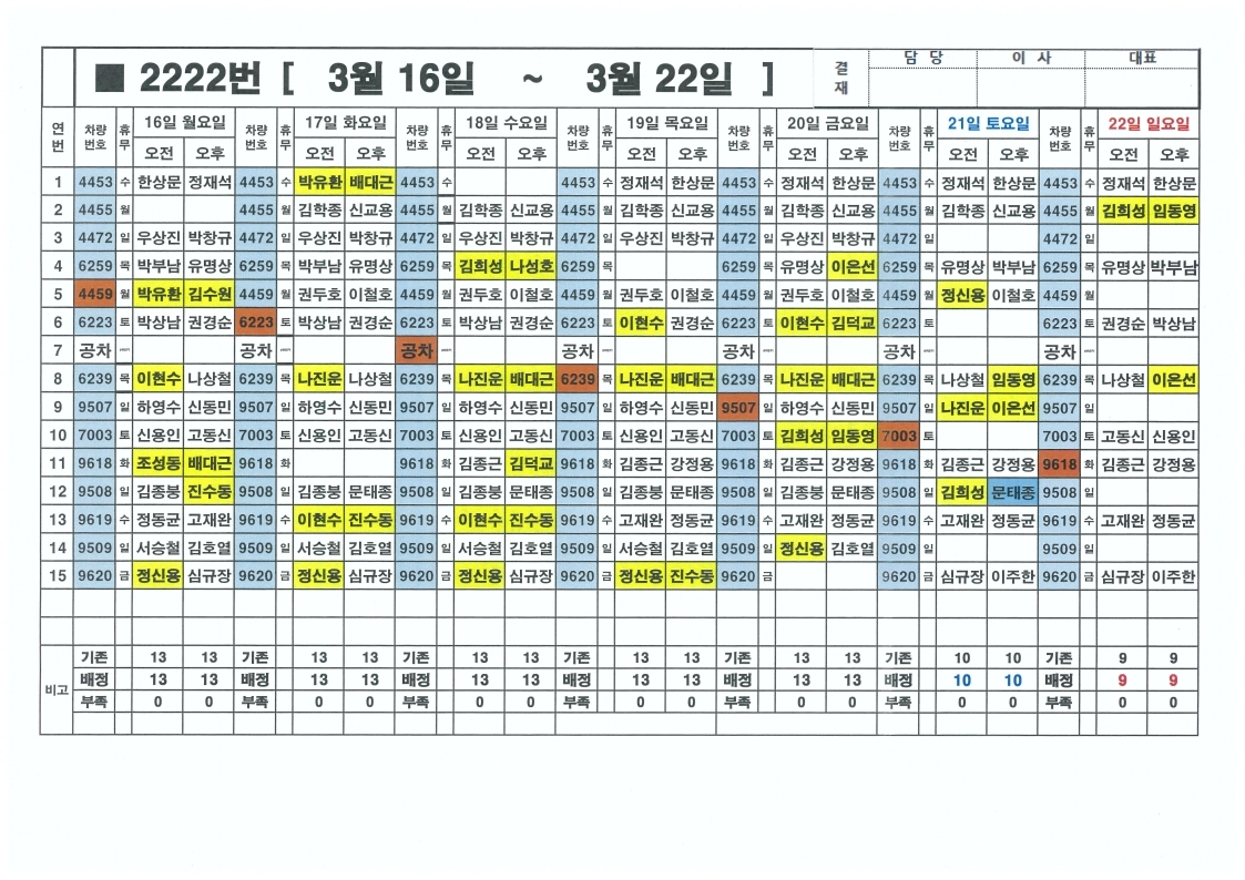 오금 주간근무표 (3/016~ 3/22)